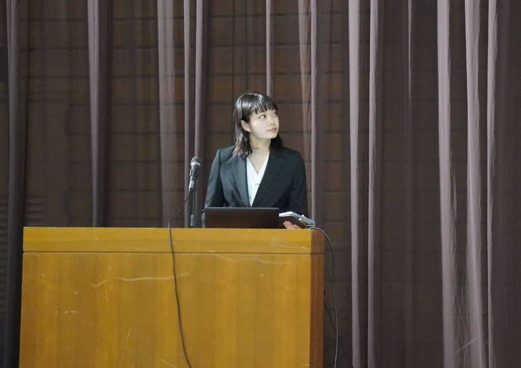 小休憩をはさみ、在校生による口頭発表がスタート。