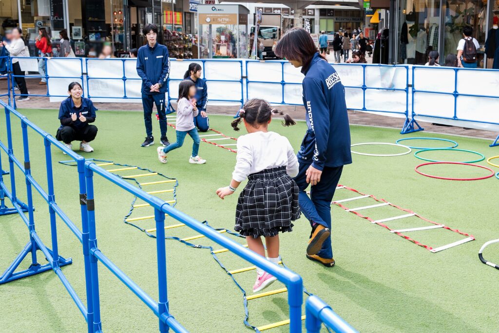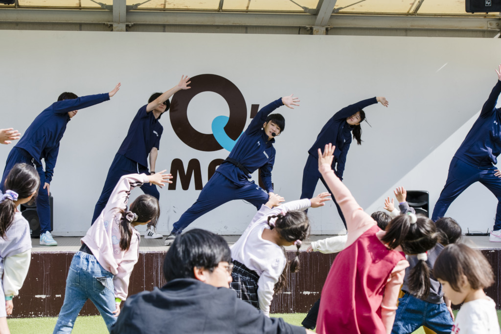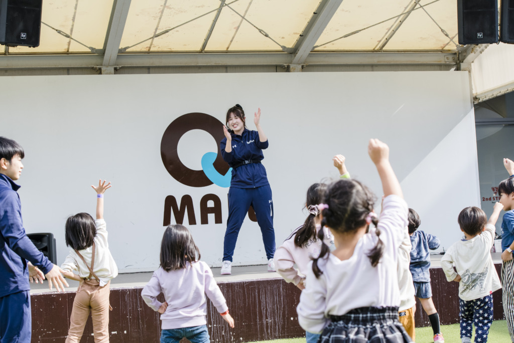 集まったお子さんたちは、ステージに立つ学生の姿を見ながら、ジャンプしたり走ったりと元気いっぱいです。傍で見ているご家族も、思わず笑顔がこぼれていました。