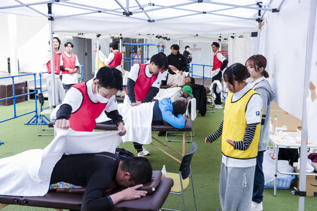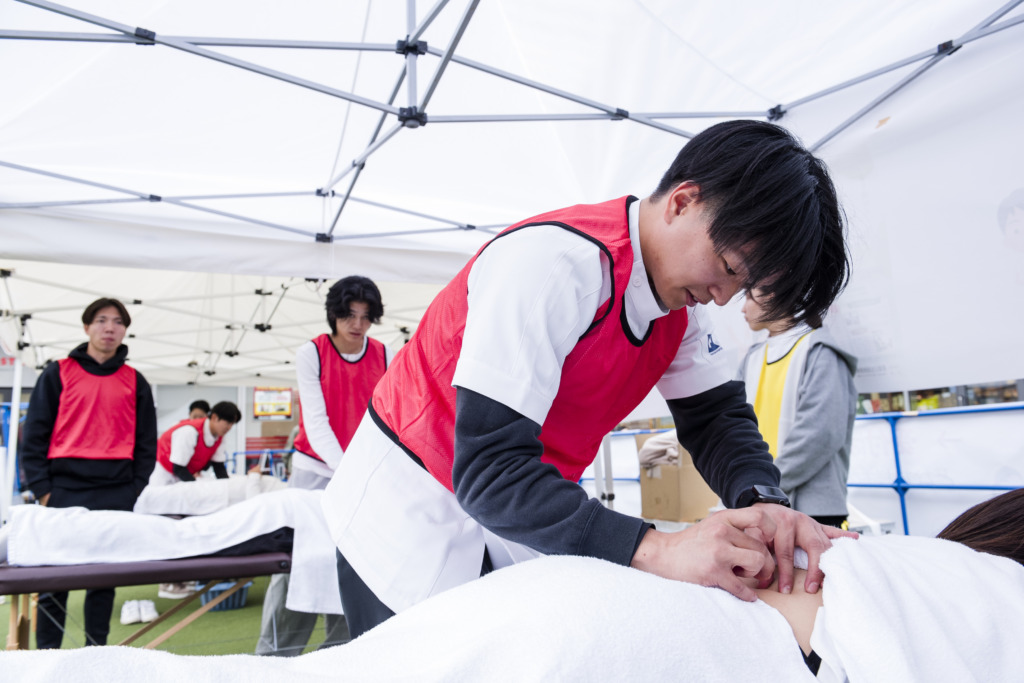 鍼灸学科のブースでは、鍼灸の体験や体質チェックを実施。