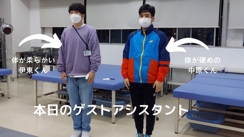 早速、中原くんをモデルに、「体が硬い人に有効なストレッチ」を教えてもらいます。