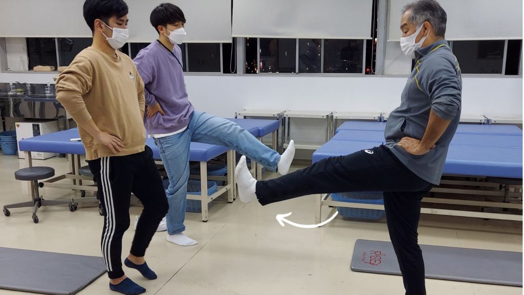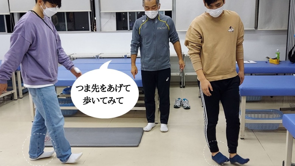 「相反抑制」を学びつつ、つま先をあげながら歩いてみたり。