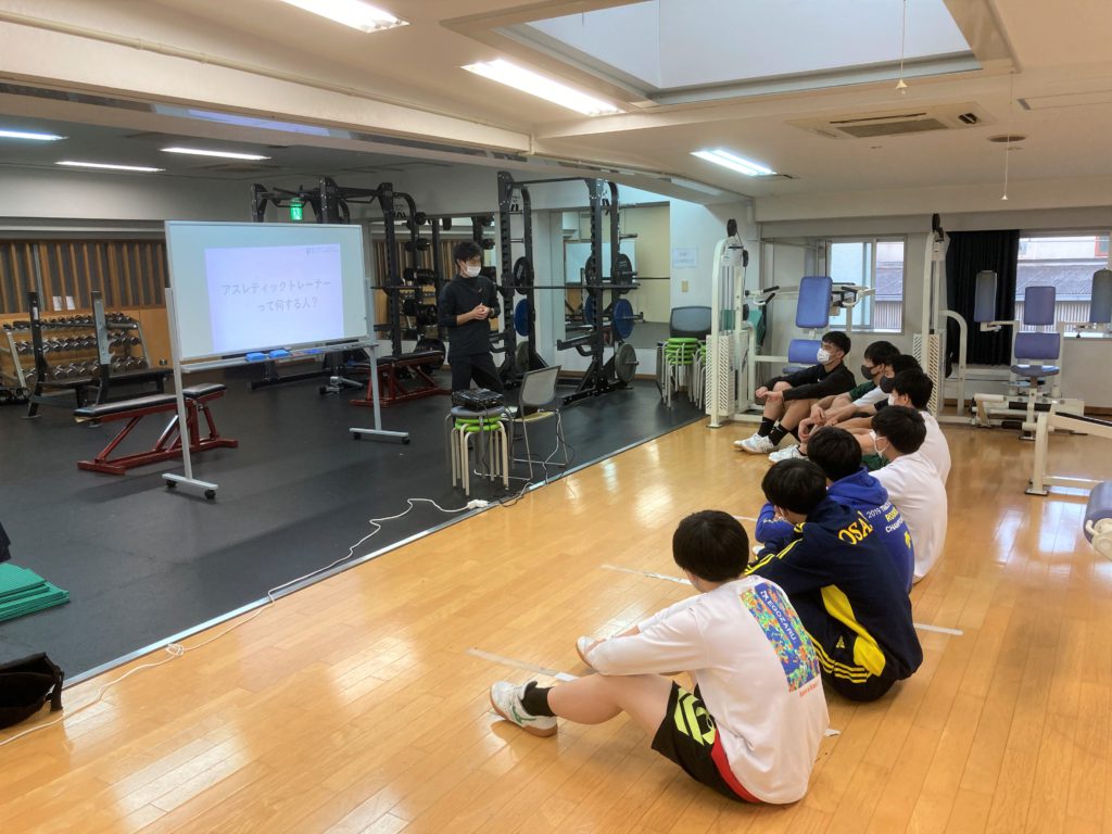 本校は「スポーツトレーナー分野の理解を深める」をテーマに、1、2年生を対象に全6回の講義を展開します。ひとくちに「トレーナー」といっても仕事内容や活躍するフィールドはさまざまです。