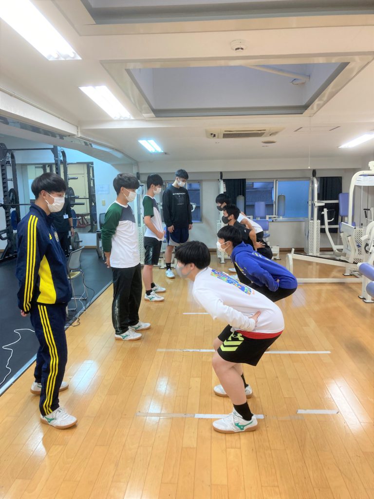正しいスクワットを理解した後、二人一組になり、お互いのフォームをチェックします。トレーニングは動作エラーがあるとケガにつながる恐れがあることも学びました。アスレティックトレーナーの仕事をより詳しく知るきっかけになったのではないでしょうか。