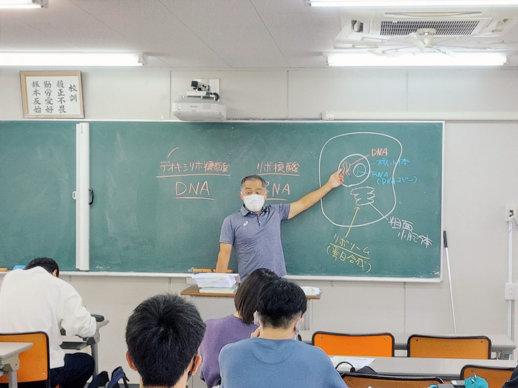 「苦手だった生理学が理解できるようになりました。解答を間違えても『今はできなくても大丈夫。そのうちできるようになるから』と励ましてくれます」、「青木先生はノールックでめっちゃわかりやすい解説図を描いてくれるから頭に入りやすい。神授業です」などなど、3年生のみなさん、青木先生の授業の凄さを次々に証言してくれました。