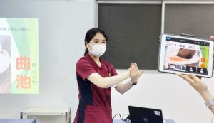 オンラインで参加してくださった生徒さん、来校してくださった生徒さんと、講義を聞く→ツボを確認して押す→講義を聞く……という流れを楽しんでいたら、あっという間に講義が終了。日開先生は終始ゆったりリラックスした語り口で、とても親しみやすかったです。鍼灸学科の生徒さんは普段、こんな感じで授業を受けているんでしょうね。