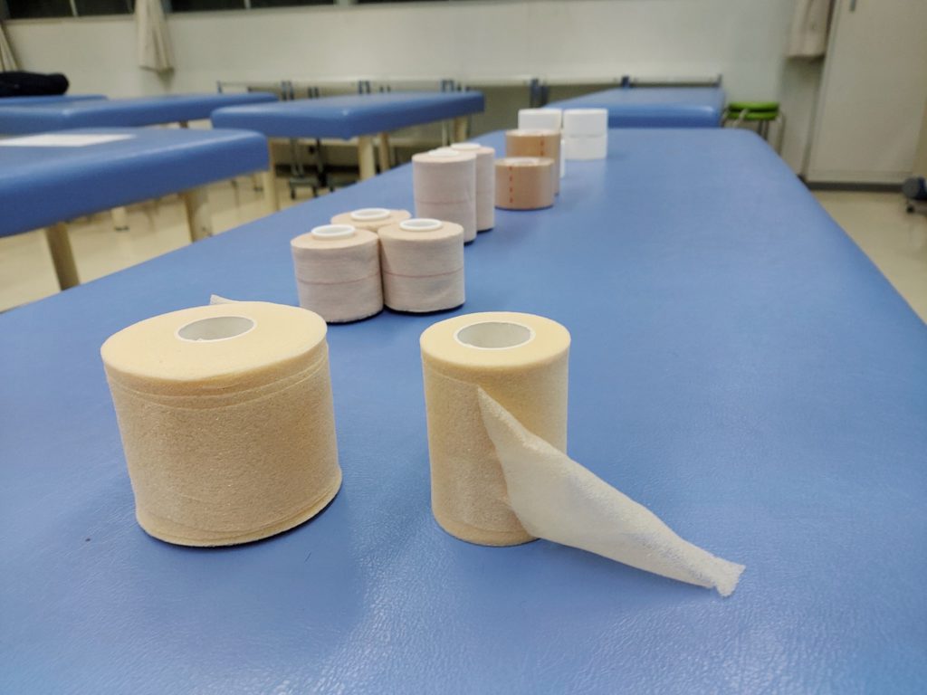 教室に入るとすぐに目に留まったのが、ずらりと並んだいろんな種類のテーピング。