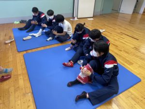 ペアで行うマッサージと、ひとりでもできるセルフマッサージの方法を覚えてもらいました。
