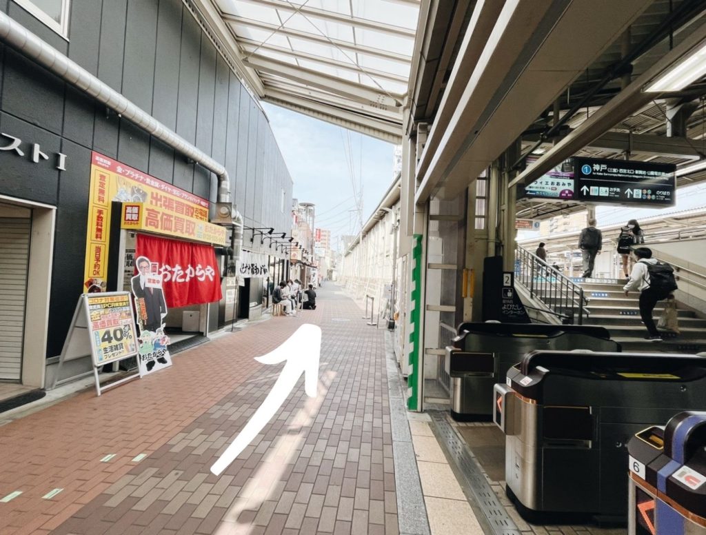 改札を抜けた後は、右手にまっすぐ進みましょう。