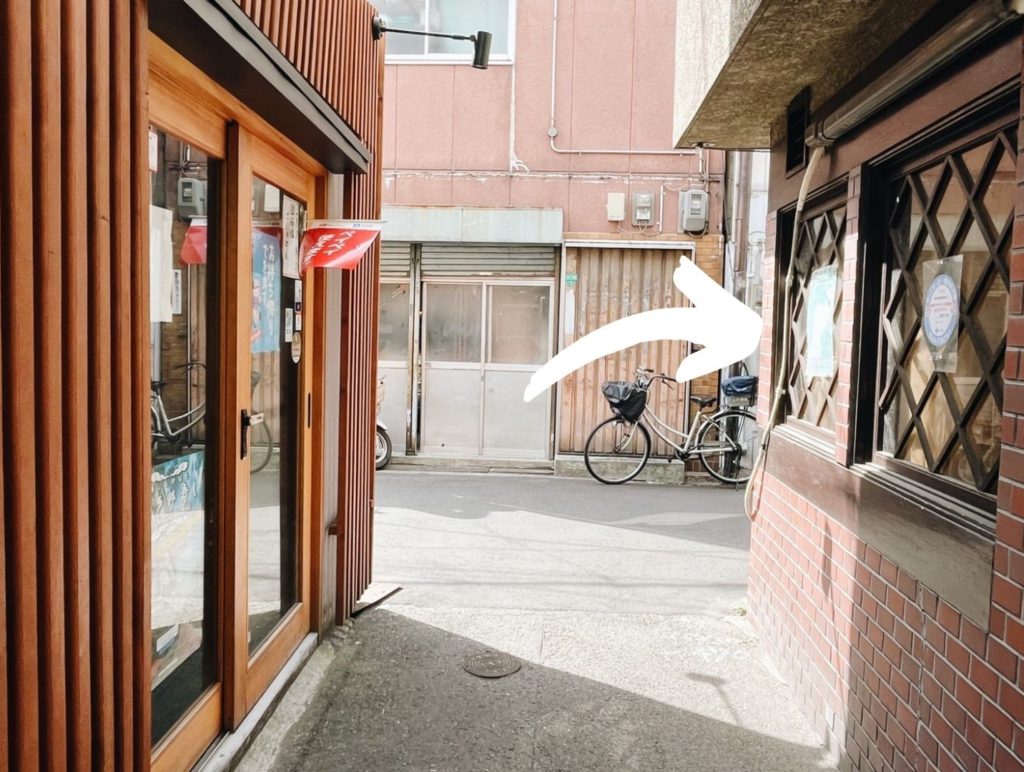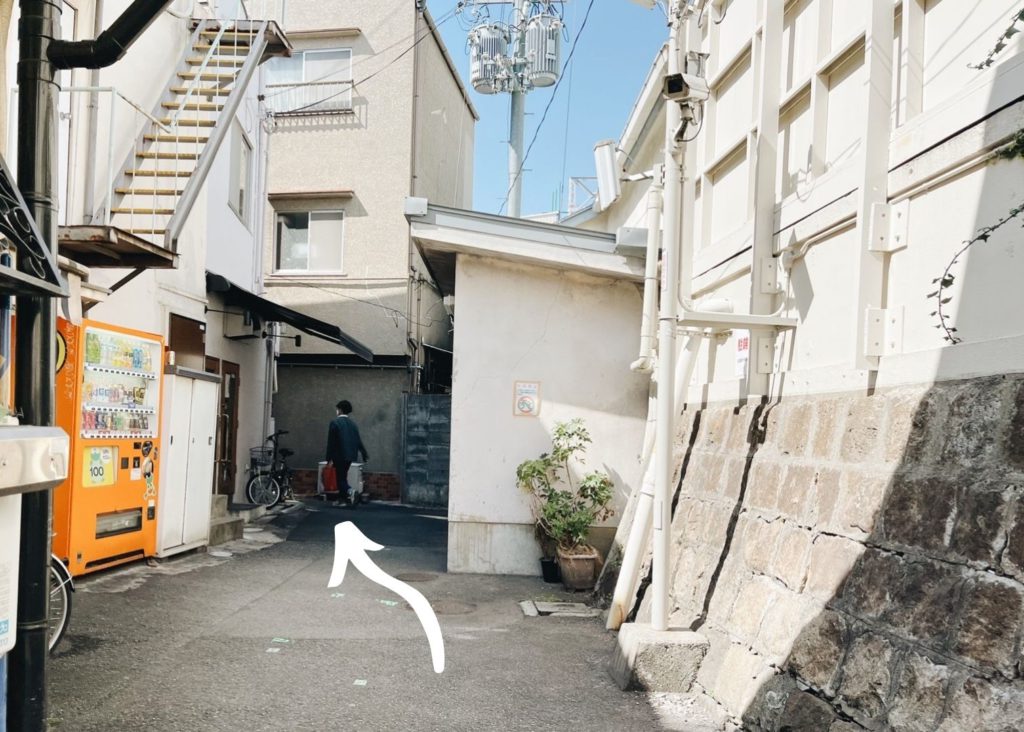 線路沿いをひたすら歩いていくと、細い路地に入ります。