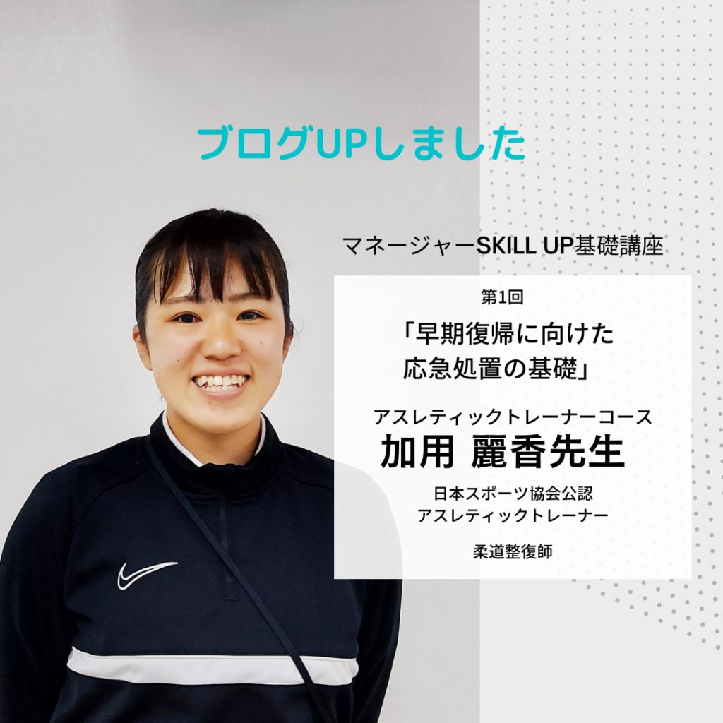 次回は5月9日(月)、テーマは「ケガ発生頻発部位、足首・膝に対するテーピング」です。講師は日本スポーツ協会公認アスレティックトレーナー、柔道整復師の篠浦達智先生です。