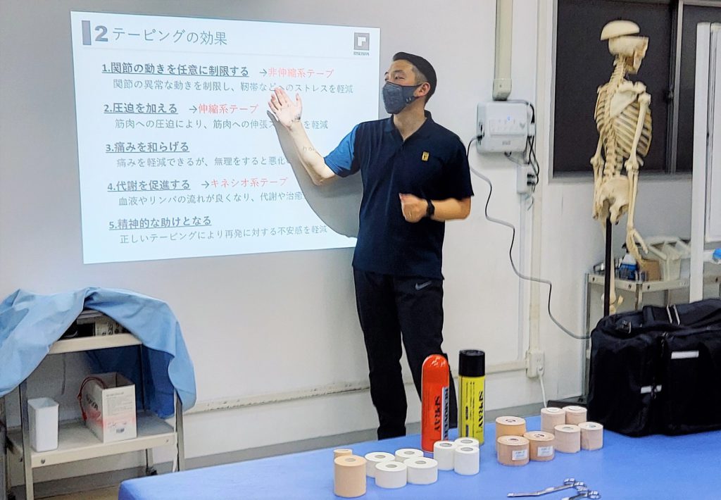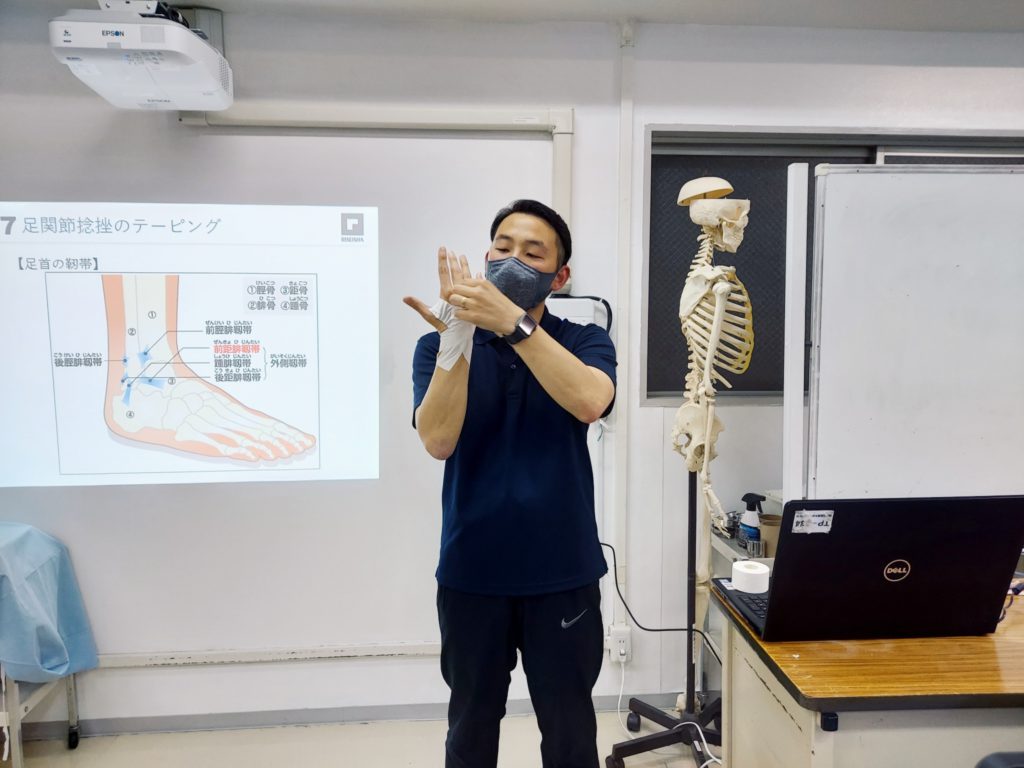 5/9 (月)、第2回マネージャーSKILL UP基礎講座が来校&オンラインで開催されました。テーマは「ケガ発生頻発部位、足首・膝に対するテーピング」。