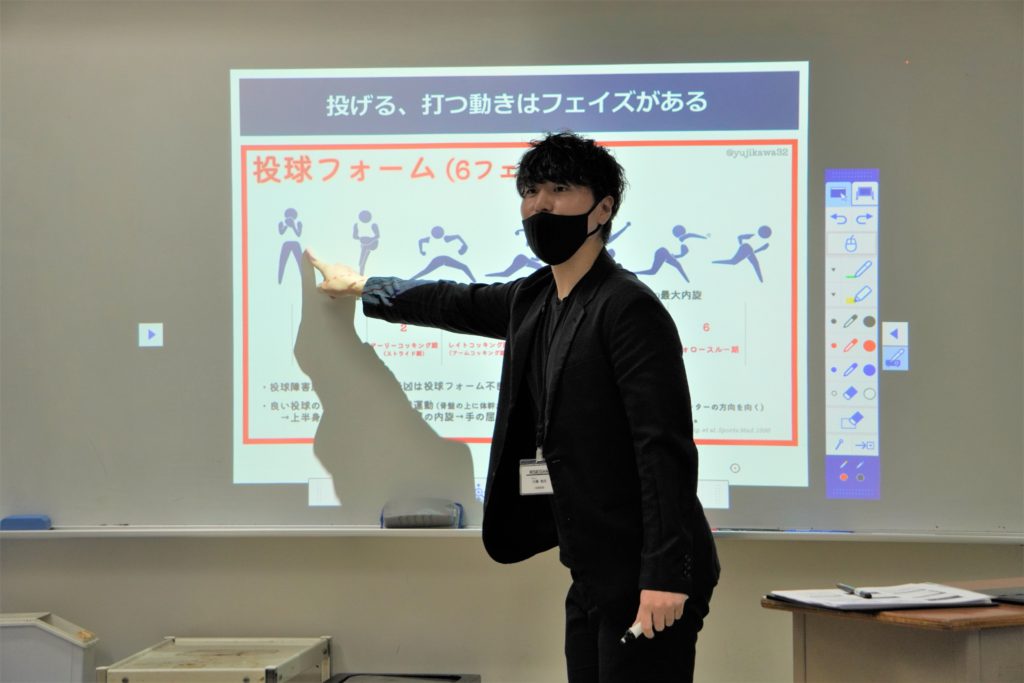 まずはレクチャー。投げる、打つ動きにはフェーズがあり、投球フォームには6フェーズあるそうです。