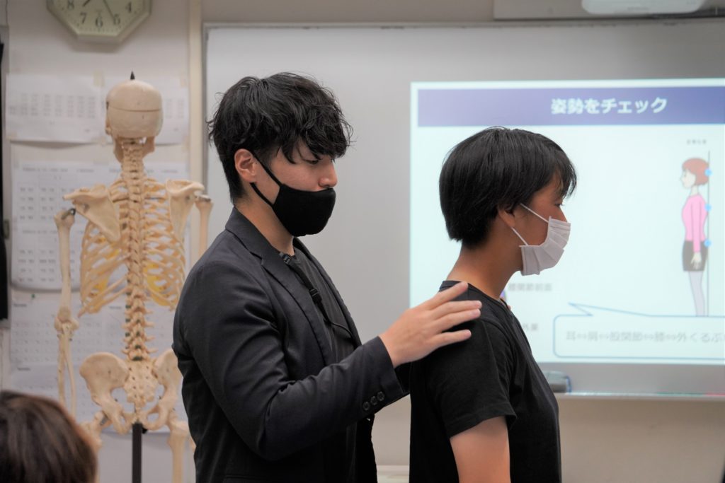 その後、「なぜ、痛くなるのか」のメカニズムを学びながら、背骨と太もも裏の柔らかさのチェック、姿勢のチェック法を行いました。