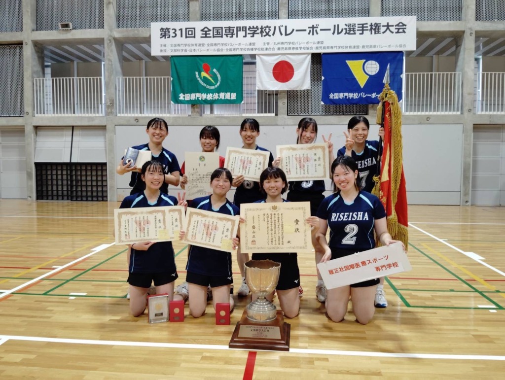 2024.09.02 お知らせ 【ご報告】第31回全国専門学校バレーボール選手権大会優勝 本校の女子バレーボール部が、ビーラインスポーツパーク姶良(鹿児島県姶良市)で行われた「第31回全国専門学校バレーボール選手権大会」で優勝しました。 全国制覇は本校バレーボール部創部初の快挙となります。 また、大会を通して、下記の選手が表彰されました。 ■最優秀選手賞 澤井萌乃さん(柔道整復学科) ■ベスト6 澤井萌乃さん(柔道整復学科) 内藤笑奈さん(理学療法学科) 川﨑心琴さん(理学療法学科) ご声援ありがとうございました。 バレーボール部の詳細は、こちらをご参照ください。 前の記事 記事一覧 次の記事