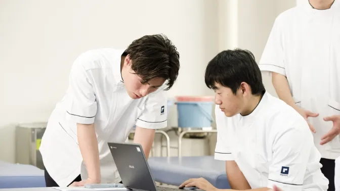 医療分野は覚える知識量が多く、難しい用語もあるため、それまでのやり方では上手くいかないことがあります。苦労していそうな学生には面談を行い、勉強の仕方をアドバイスしています。また、普段から「アウトプットも大切な勉強法だよ」と話すためか、空き時間に友達同志で問題を出し合っている光景もよく見られます。さらに本学科は接骨院でのアルバイトを積極的に紹介しています。学生はたとえアルバイトでも白衣姿なら患者様は「先生」と呼んでくださり、臨床の先生方との関わりを通じて大きな刺激を受けます。すると、医療従事者としての自覚が出て、勉強にも熱が入るのです。このように「モチベーションを高める」サポートも、医療の学びには大切だと考えています。