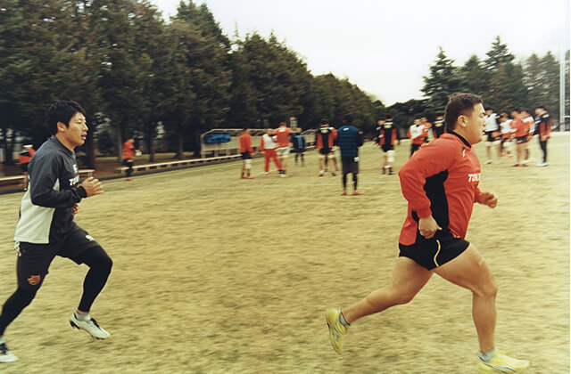 2017年12月中旬、東京・府中市郊外にある株式会社東芝の広大な事業所の一角で、ラグビートップチャレンジリーグの名門・東芝ラグビー部「ブレイブルーパス」が、週末の試合に向けた全体練習をおこなっていた。